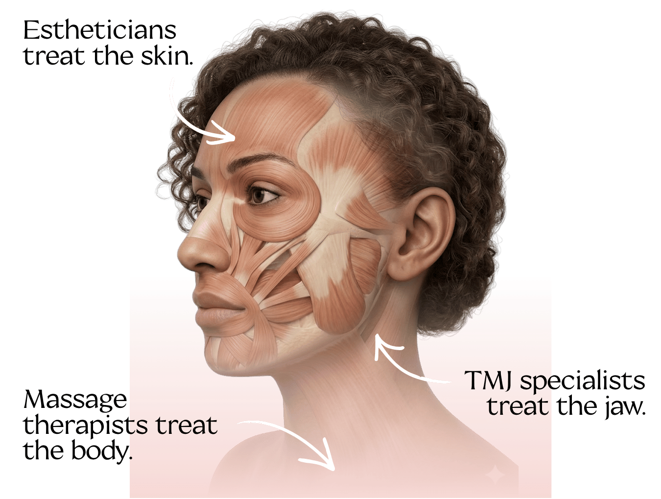When this tightens, it pulls the cheeks and jaw down south so even after a relaxing facial, clients still find their jaw droopy because the deeper facial tension wasn’t released.