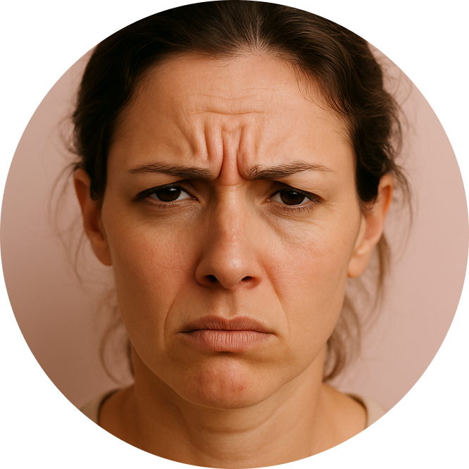 Squinting, frowning, or constantly raising your brows may seem small but your muscles feel it every day, causing sagging or hooding.